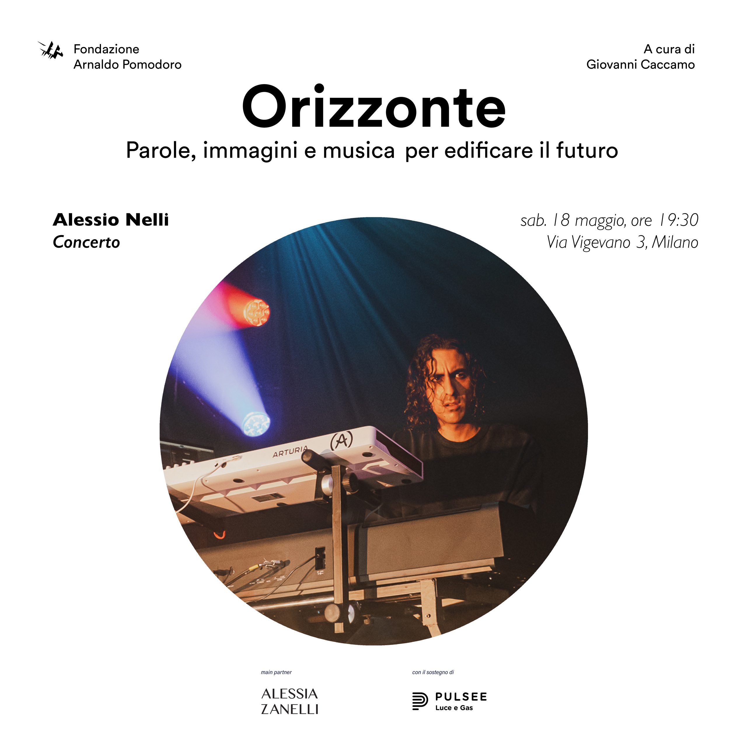 Il palinsesto Orizzonte. Parole, immagini e musica per edificare il futuro a cura di Giovanni Caccamo propone nello studio Arnaldo Pomodoro appuntamenti culturali di varia natura: occasioni speciali di incontro con gli artisti, conversazioni intime in cui i protagonisti, come in un salotto, raccontano al pubblico aspetti meno noti del loro lavoro, aneddoti e curiosità, impreziositi da alcune piccole performance live.