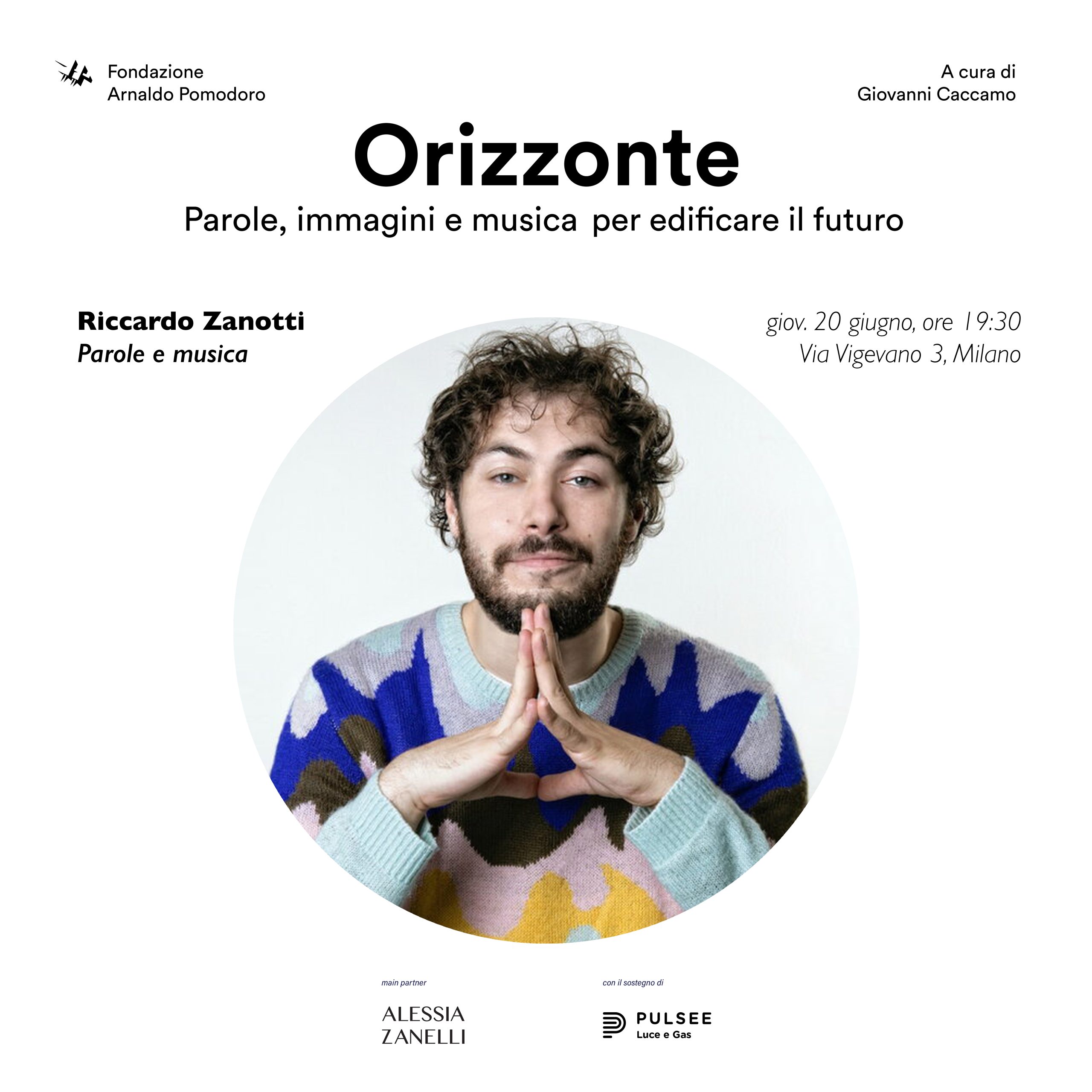 Il palinsesto Orizzonte. Parole, immagini e musica per edificare il futuro a cura di Giovanni Caccamo propone nello studio Arnaldo Pomodoro appuntamenti culturali di varia natura: occasioni speciali di incontro con gli artisti, conversazioni intime in cui i protagonisti, come in un salotto, raccontano al pubblico aspetti meno noti del loro lavoro, aneddoti e curiosità, impreziositi da alcune piccole performance live.